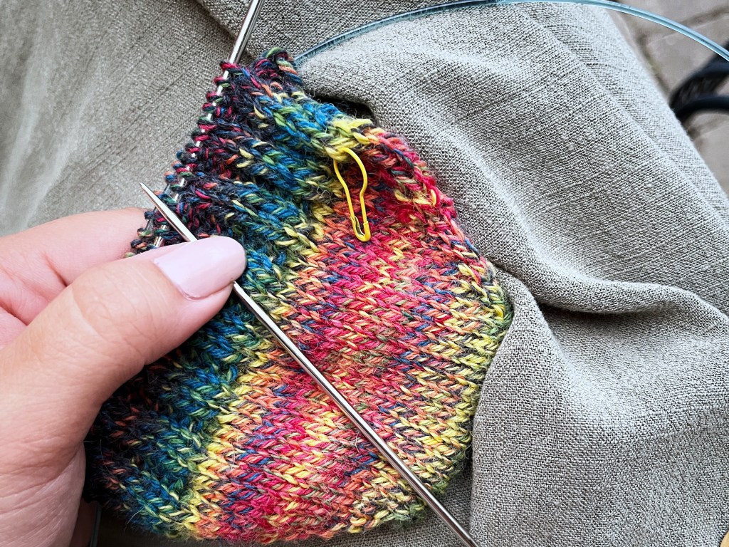 Then a sleep regression hit, along with teething. Michael would only nap in my arms, and knitting a large and cumbersome object while holding a sleeping baby isn’t a great idea. So it was back to the socks. And as the heel formed beneath my needles, I realized my struggle with motherhood and my struggle with socks weren’t that different.