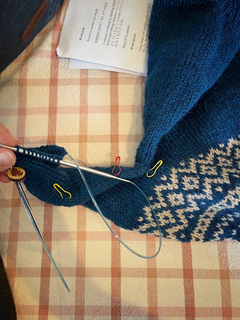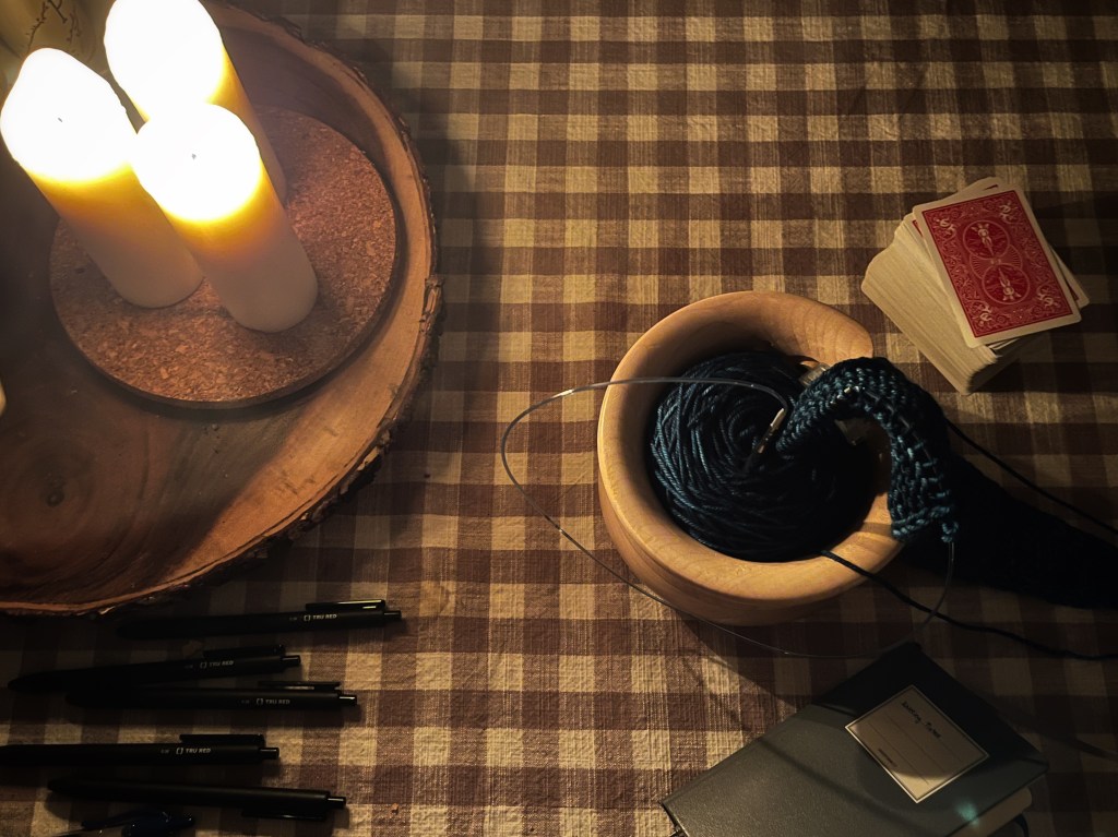 I have a few items on my needles that I’m working on as 2022 draws to a close. A mosaic colorwork cowl I’ve been dreaming of knitting since I saw the pattern on Ravelry, and a few gift knits too.