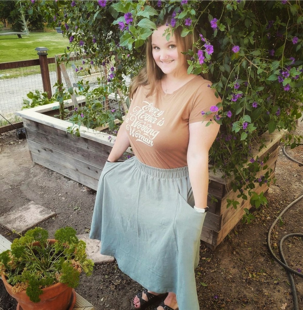 In May, I shifted some of my making focus towards sewing instead, as I needed new clothes to fit my changing body. As someone who has struggled with body image throughout my life, I wasn’t sure how I was going to navigate the changes that came with pregnancy and postpartum. Instead of agonizing over clothing sizes or trying to fit into my pre-pregnancy outfits, I decided to make my own clothing to fit my body where it was at that time. I made a blouse and a skirt, and still wear them both often.