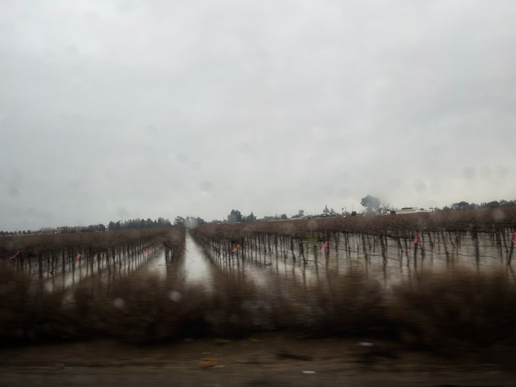 On New Year’s Day we woke to find a huge branch from our neighbor’s eucalyptus tree blocking the driveway. Thankfully we could get around it through my parents’ driveway, so we got in the car to try to make it to church, but after our third time being rerouted due to flooding, we turned back and went home.