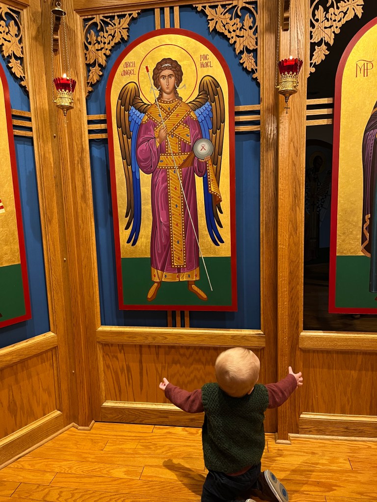 He’s come to accept church as a second home, and is comfortable enough to crawl wherever he desires, keeping both me and his godmother on our toes.