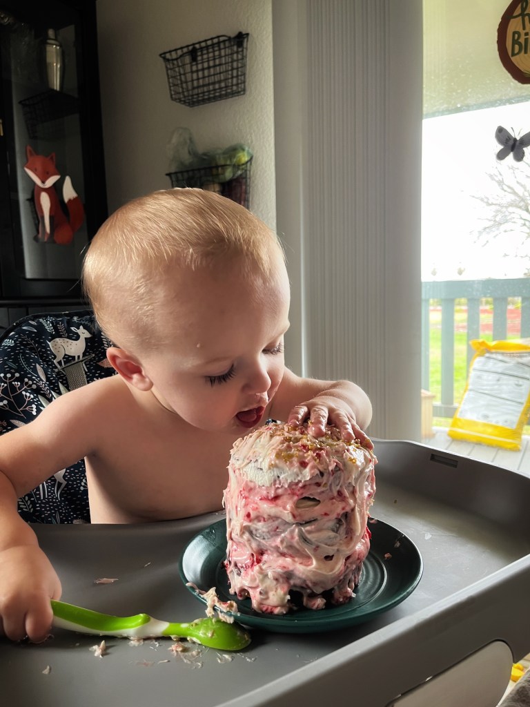 I had been struggling with “mom guilt” over having a simple and small birthday party, especially since my original plan had been much more ornate and exciting and involved inviting many friends. But seeing the happiness on his face as he opened gifts and wandered from person to person and smashed cake into every crevice of his high chair, that guilt eased a little. Although his party wasn’t elaborate, the cake was wonky, the house small, and the decorations imperfect…I know he still loved every moment of it.