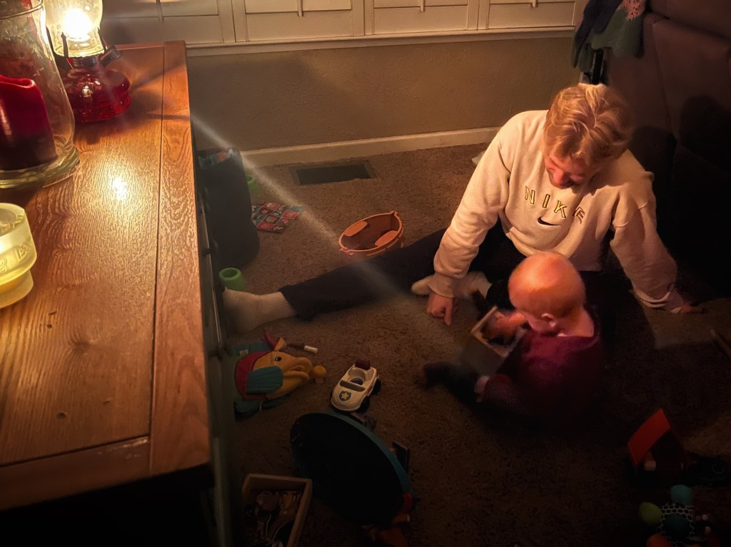 We’ve had power outages on and off all week due to the gale and flood warnings. It’s been an exercise in flexibility for our family. We never know if we will wake up warm with the preprogrammed coffee pot brewing, or to a dark and chilly house with no running water. It’s been pretty stressful, especially with a rambunctious almost one-year-old. Both Jake and I work remotely too (him full-time, me part-time) and the lack of power and internet has added to the stress. Thankfully, both our employers are understanding.