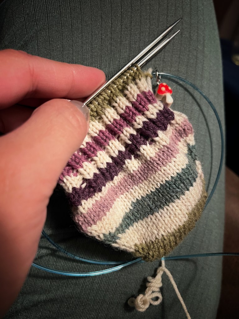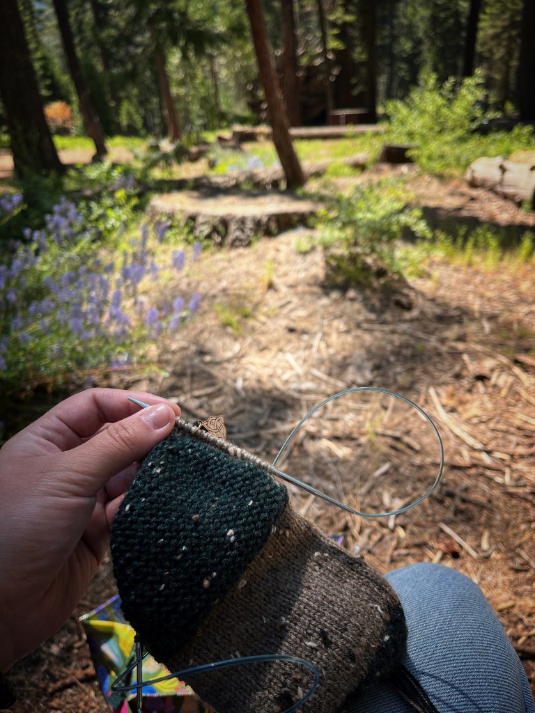 I’ve been continuing to knit and spin in my spare time — usually evenings and nap times. I’ve made a few skeins of 2 ply, DK/light worsted weight yarn. I’m looking forward to giving updates on the projects I plan to knit with them! I also finished one pair of socks and started on another. I’m leaning more into spinning right now, over knitting. With all that’s going on, I relax more into the mindless rhythm of spinning, and I don’t have to count or pay as much attention.