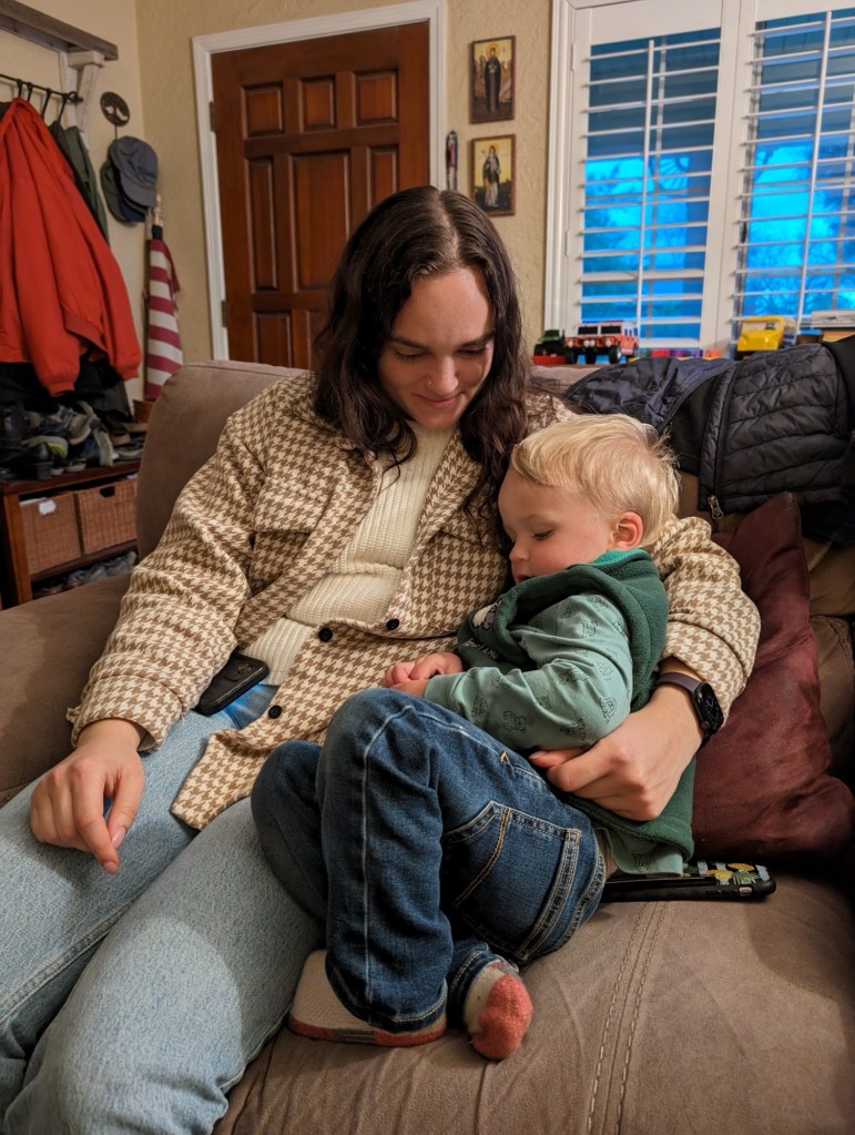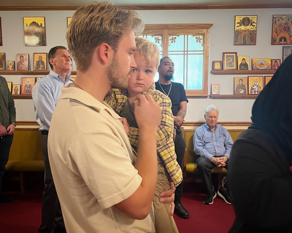 It was a small baptismal service without a party afterwards, given that we’re still in the middle of Lent and things have been quite busy. However, Pascha falls on the exact day she turns two months old: we will be sure to celebrate her heartily along with our risen Christ. Michael was fascinated by all of it. We had explained the baptism to him and two-year-old terms before hand , and so half way through the service he loudly proclaimed that Opa needed to “put her in the water”!