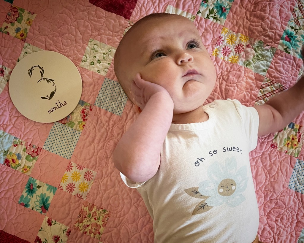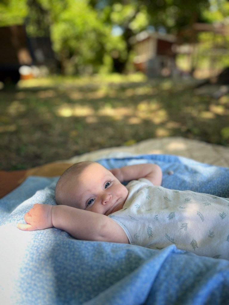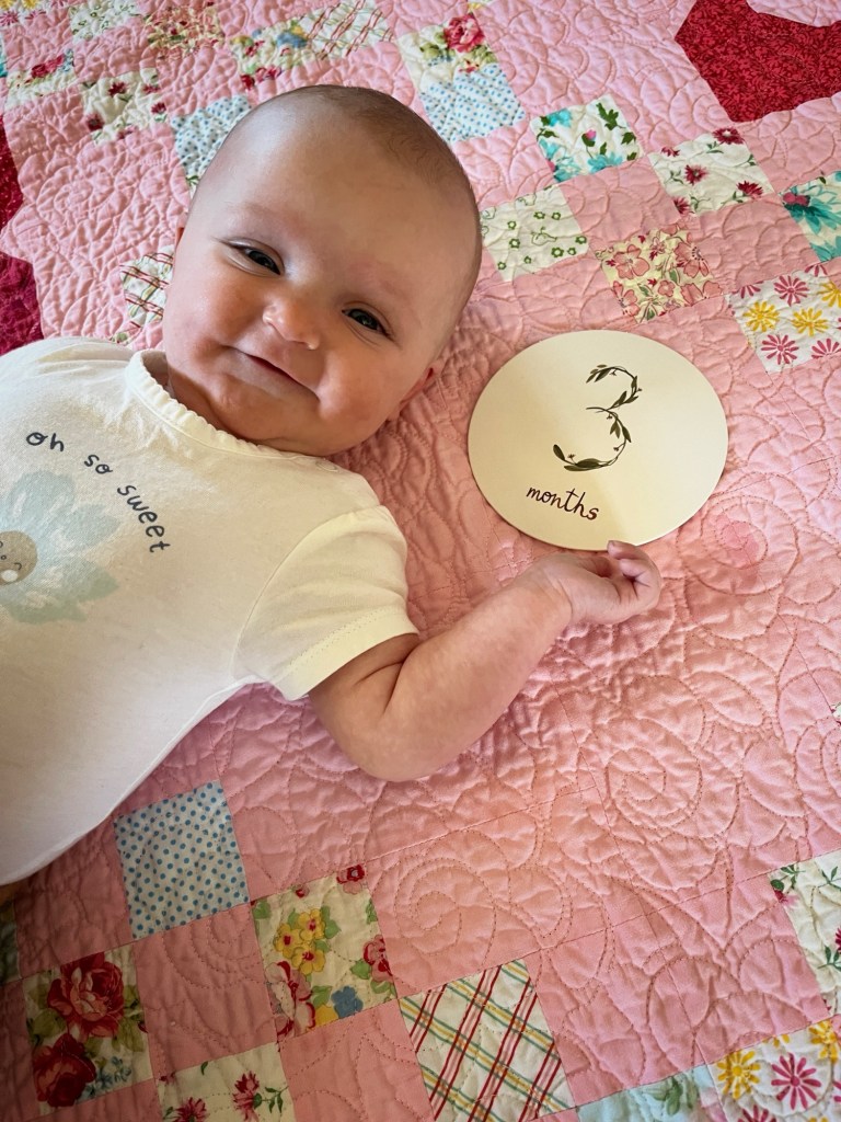 Beatrice is growing like a weed and as happy as a flower. She has what I call a “full body smile” that is often accompanied by kicks and wiggles. She’s beginning to teethe, which has led to more contact naps during the day. She continues to be an excellent sleeper at night (praise the Lord). She prefers going to bed early and waking up early: her favorite hour is currently around 5 am.