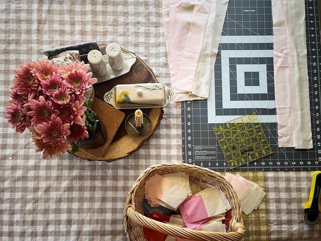 I’m slowly piecing my next quilt, and realizing I don’t enjoy the quilting process as much as I enjoy having a quilt. The precision and focus needed to cut the fabric is exhausting. Piecing is fun and so is handquilting, but what I really enjoy is snuggling under a handmade quilt while napping or reading. It’s a coziness like no other.