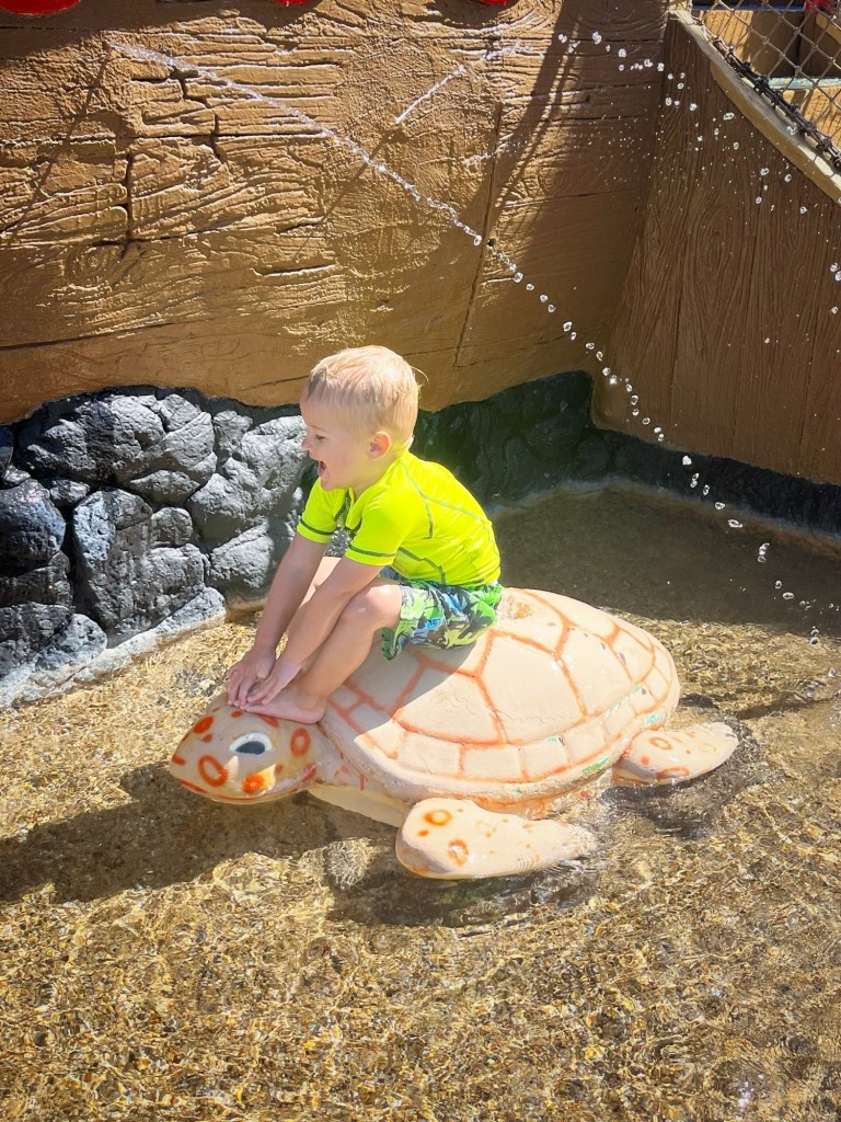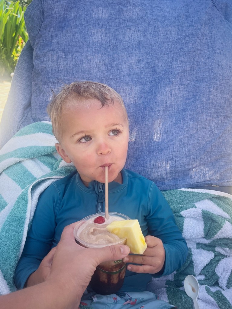 The trip was amazing. We swam with the kids in the ocean or the pools, and sat by the kids’ area to read or talk while Michael ran around. Jake and my dad swam with Michael a lot, helping him strengthen his swimming skills. I took care of Beatrice with my mom and grandparents and great aunt.
