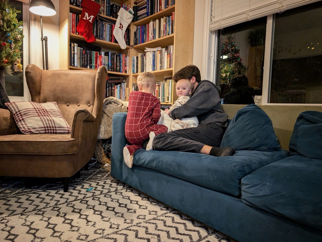 My siblings came home for Christmas — Uncle Jon has especially been a snuggly favorite.