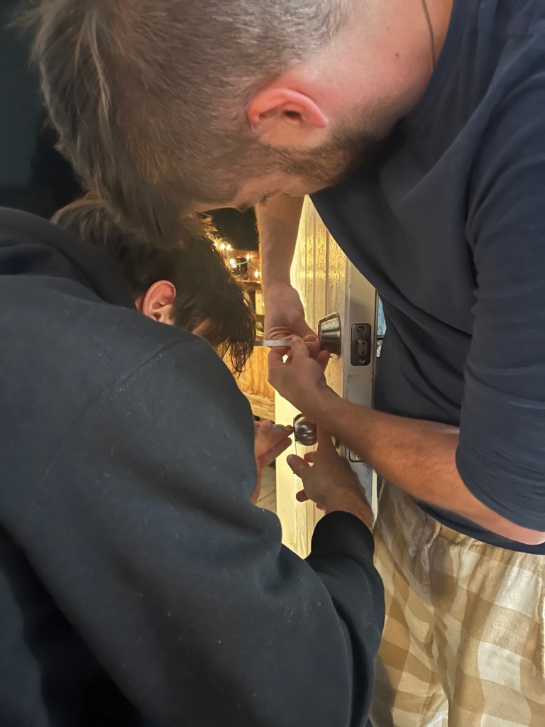 Jake got a handful of lock-picking tools for Christmas, and James and Jake have been practicing their lock-picking skills every night this week (with Michael even joining in for a moment). They have practice locks, but have also been working on our front door. Nothing is safe from their puzzle-loving minds.