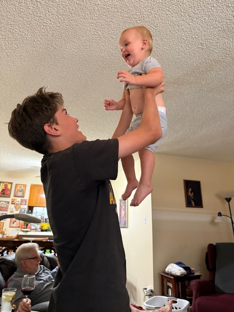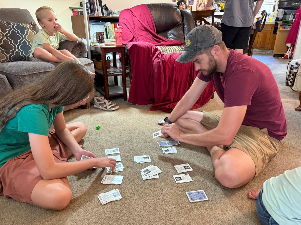 The kids had a lot of fun with their cousins and celebrating the 4th, and now we’re settling into our daily routine again. Jake takes the kids in the early morning so I can sleep in a little (Beatrice is still awake at least three times a night, and we’re still slowly, slowly working on weaning). I take them for the mid-morning and afternoon while he works in his office, then I have an hour or two to write at my desk before we all have dinner together and begin the bedtime routine.