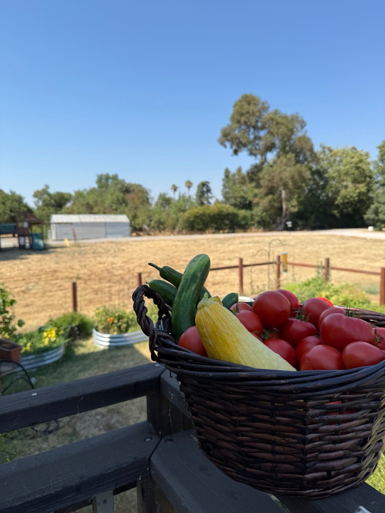 I’m grateful for our garden and its bounties in this season: drip irrigation has been a game changer. Our veggies are growing happily, and I’m swimming in a sea of tomatoes. I’m still not a dutiful enough gardener: all of my herbs have bolted and gone to seed in the summer sun, but at least they’re beautiful and drawing pollinators to my vegetables. The weeds are also atrocious — I will be fighting crab grass both awake and in my dreams til I die.