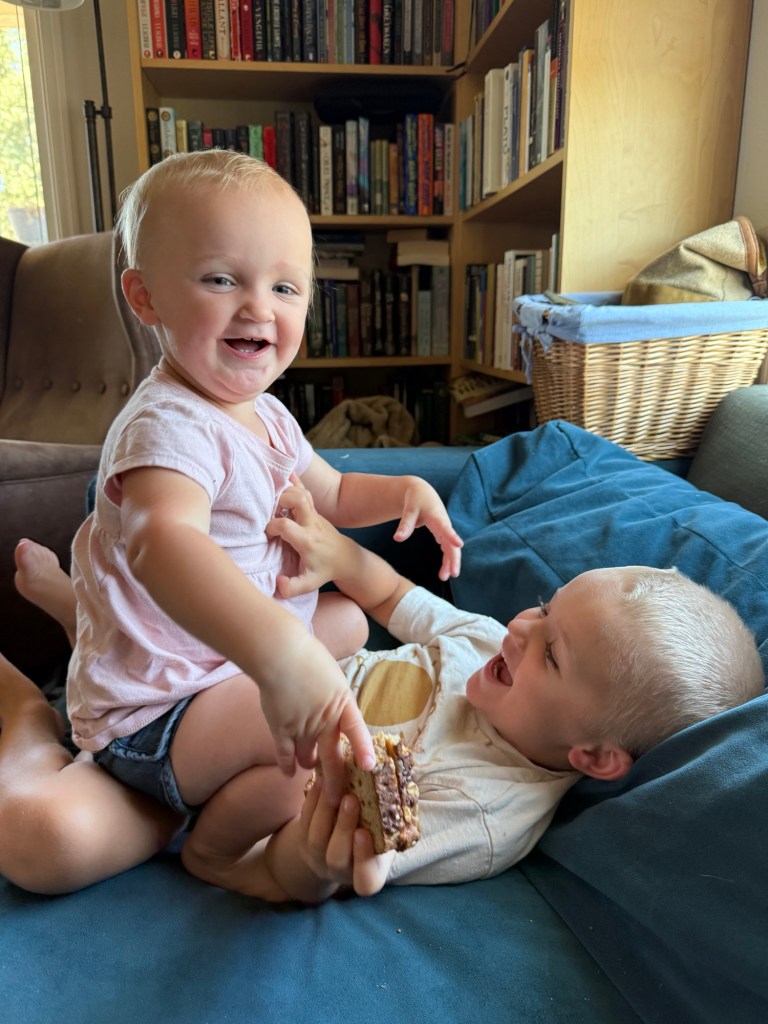 Screen time has increased a little but so has outdoor time and independent play, so I consider it an okay trade for now. They’re actually starting to learn how to play together instead of each taking turns infuriating the other. I’m hopeful that soon we’ll be spending less time separating them and have a moment’s peace during the day.