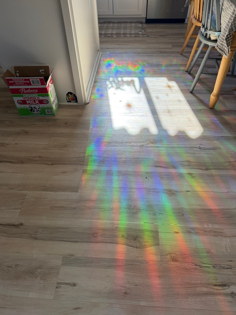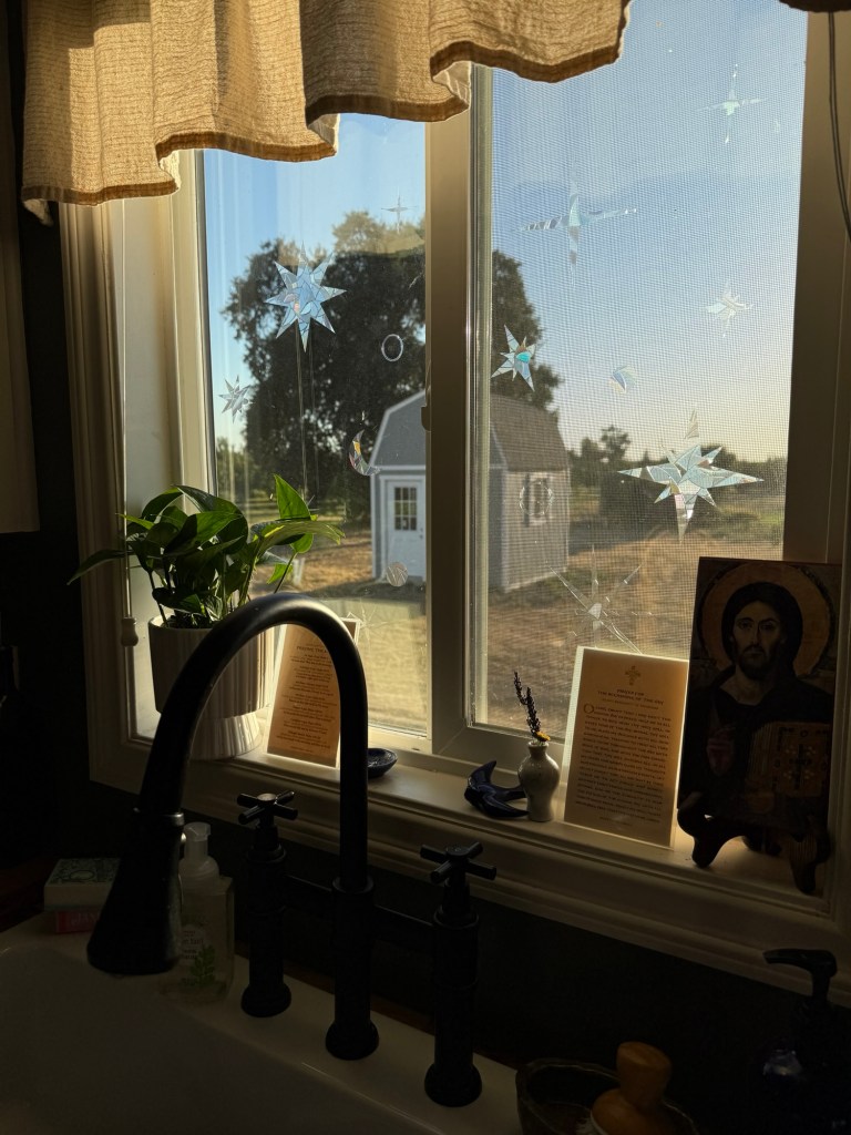 As a very visible reminder to look for the glimmers, I recently got some star-shaped window clings. Now, in the mornings and evenings, our house dances with rainbows and light. The kids giggle and roll across the prismatic colors. And I take a deep breath, and thank God for the glimmers He so generously gives that pierce through the darkness.