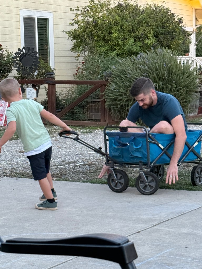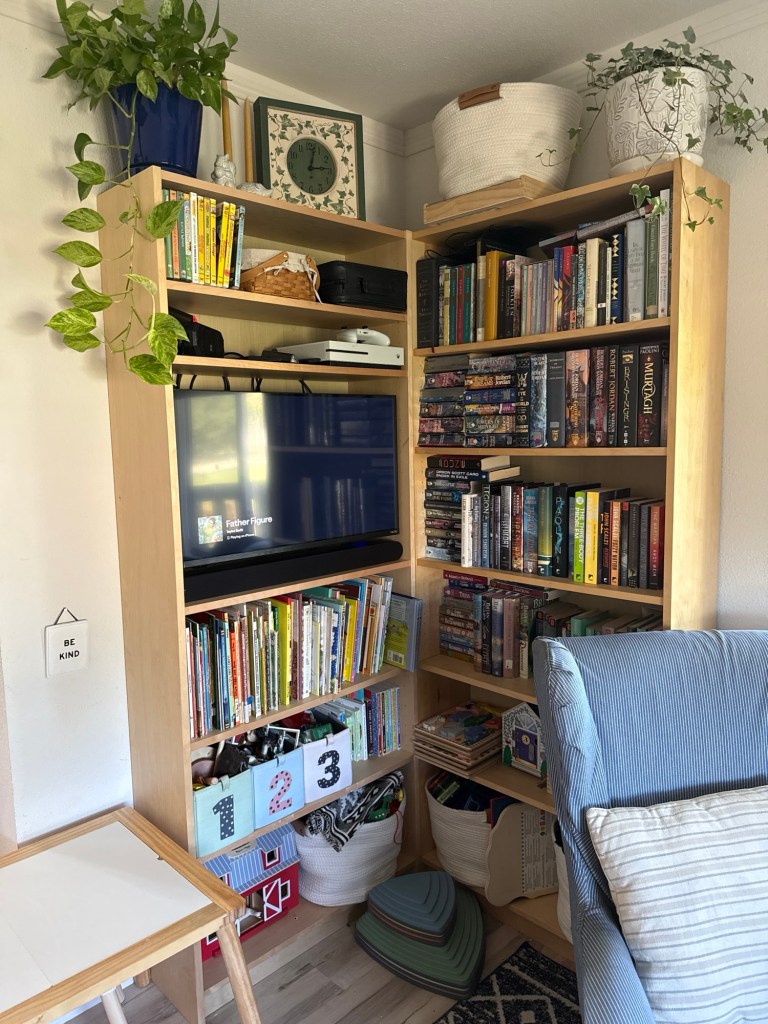 On the home front we had some fun furniture rearranging: we got a small tv to replace the one that dwarfed our living room, and we got a small curtain to cover it, too. We’re always trying to reduce our screen time, and the kids ask for it less when it’s out of sight. I also snagged an oak coffee table off of Facebook Marketplace.