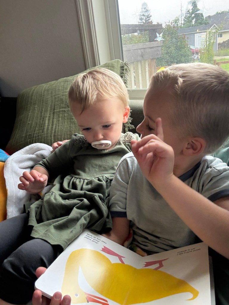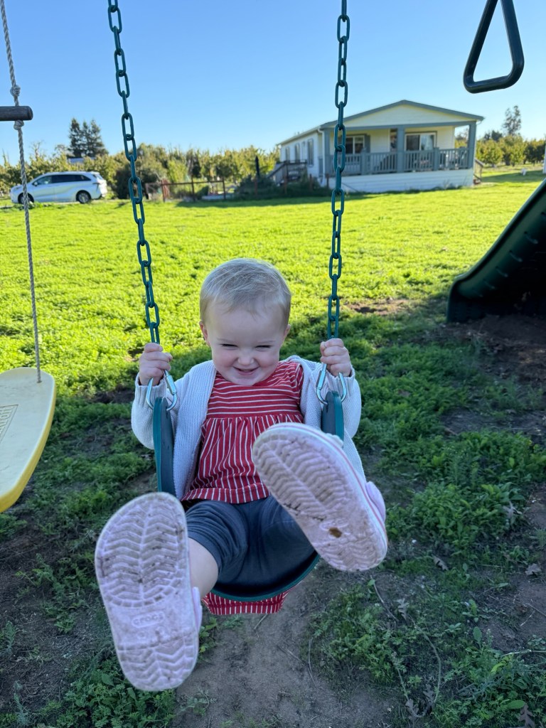 Beatrice is also developing into quite a personality. Her new favorite book is Brown Bear, she knows exactly how to push her brother’s buttons, and she adores snuggling baby dolls. She will climb anything and everything, and is absolutely fearless when it comes to playgrounds. No hesitation on big slides or swings. She sings along to everything and sings to herself all the time — favorite songs include Happy Birthday, Oh Where Is My Hairbrush, and BINGO.