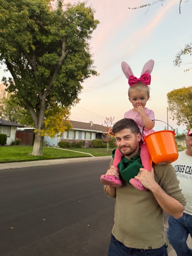 Beatrice was the sister rabbit from the same movie — she wasn’t the biggest fan of those ears though. Jake and I didn’t fully commit to costuming, but we dressed in homage to Little John and Lady Cluck.
