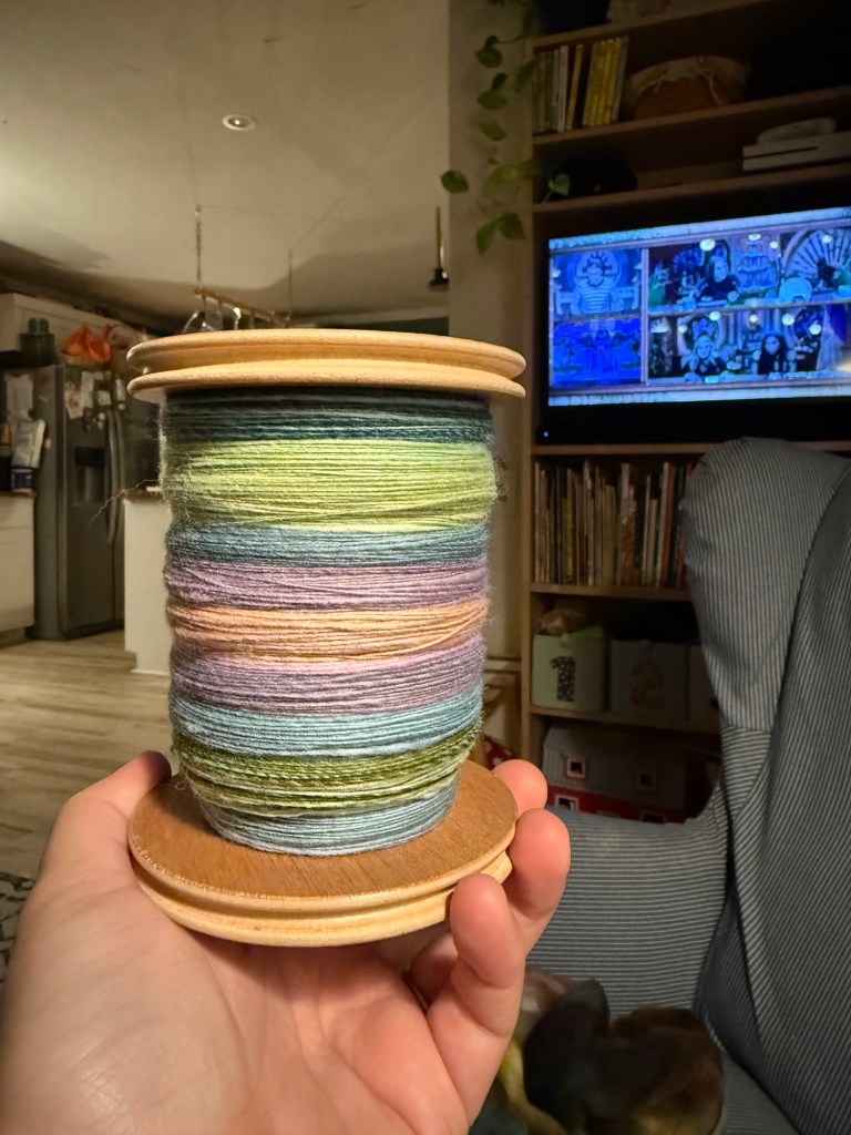 I also cast on a shawlette from the yarn I bought on our trip to New Orleans, using a really cute free pattern . In spinning news, I finished spinning up my first ply for a combo spin, and I’m currently working on my second ply. It’s been fun to spin the evenings while Jake and I watch our nerdy shows. We’re currently watching campaign 4 of Critical Role and keeping up with our favorite comedy shows on Dropout.
