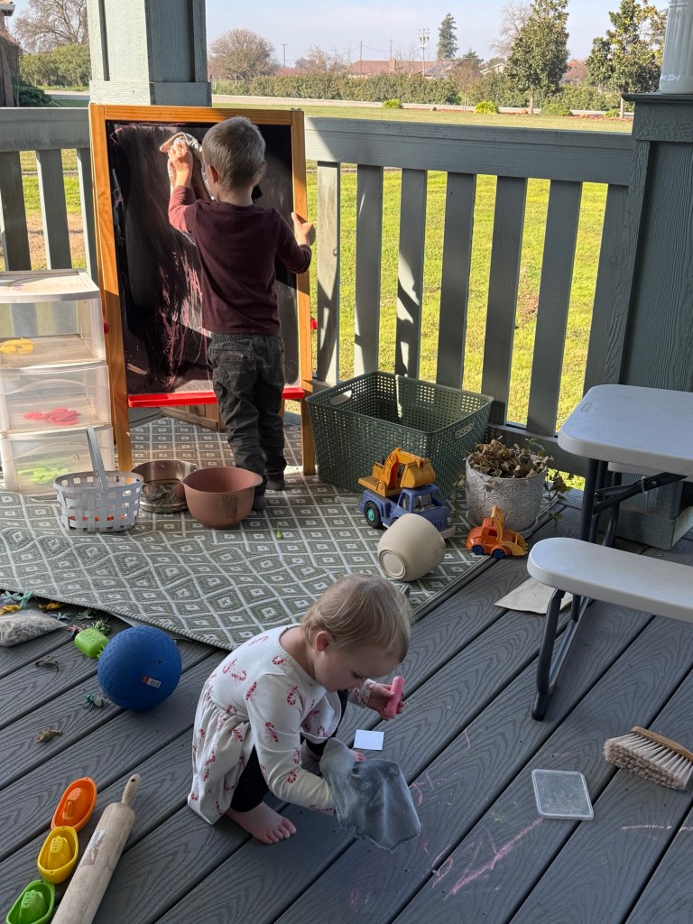 Jake then had to fly out for a business trip the day after Michael’s party, and I solo-mommed for the next five days while also working to meet two article deadlines. We did a lot of art together — I wrote (often by hand) while they drew with markers or chalk. We also had a lot of screen time. You win some, you lose some.