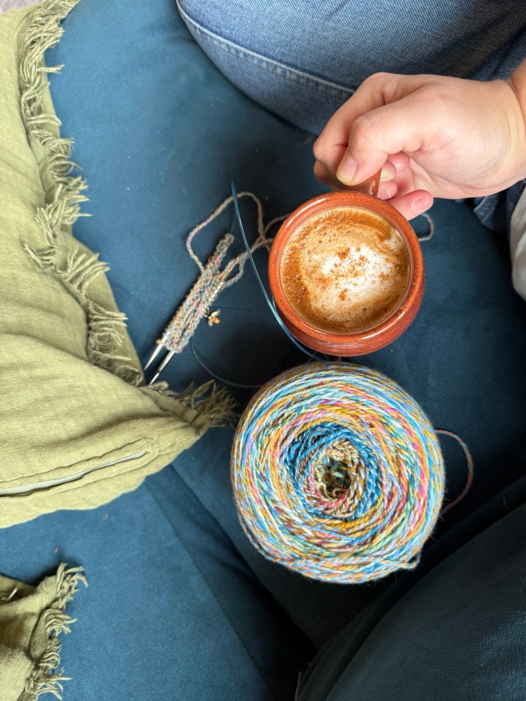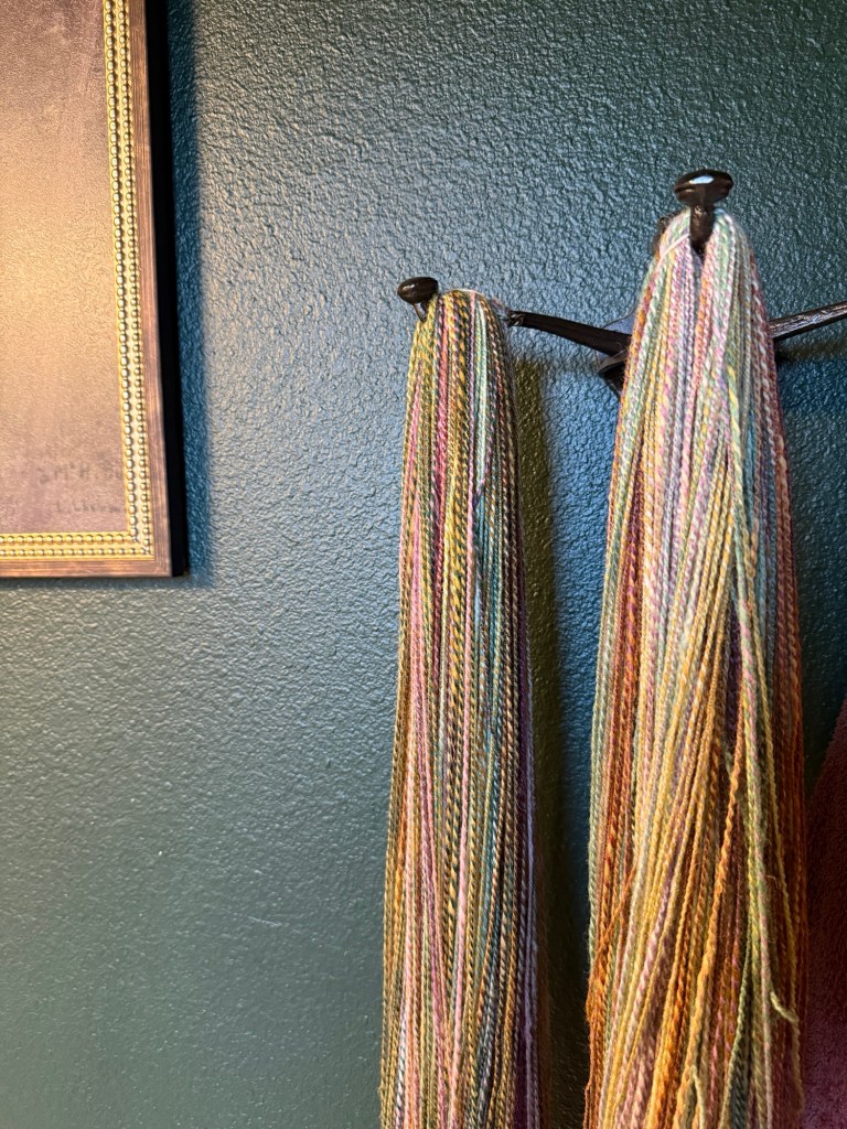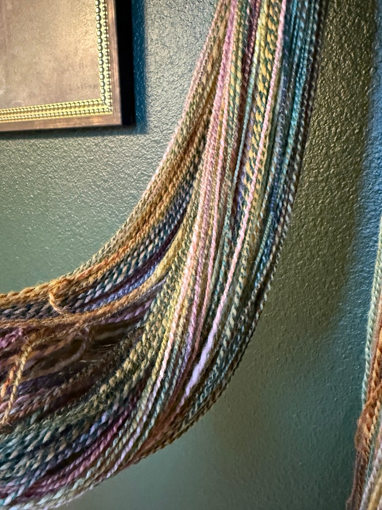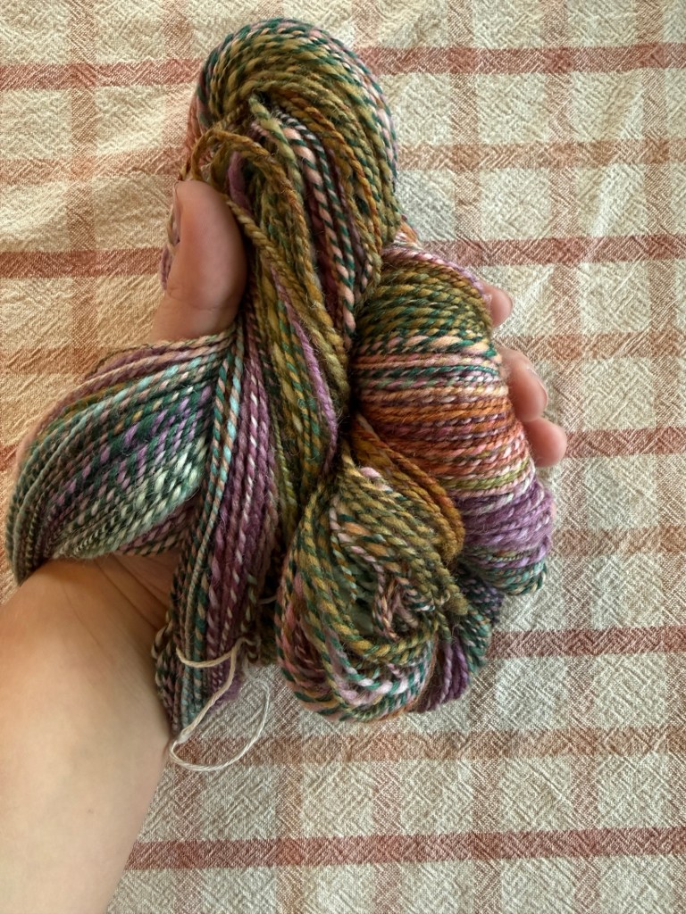 I also finished a new skein of handspun yarn. I love its moody jewel tones. It was my first time finishing a spin on my E-spinner instead of my traditional wheel —  it was a learning curve, so there are some parts of this yarn that are pretty rough, but that’s part of the charm of making things by hand.