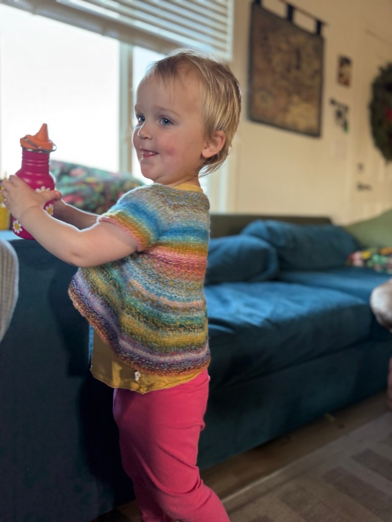 In making news, I finished knitting this handspun cardigan for Beatrice. It’s so soft and squishy and colorful, and will be absolutely perfect for spring days.
