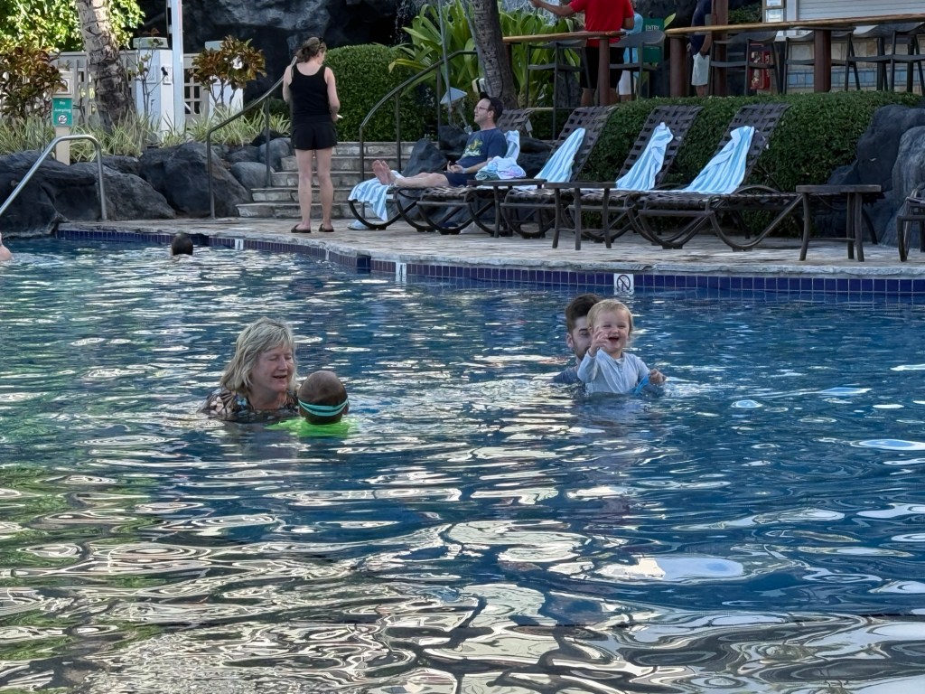 Both kids spent hours every day in the pool — swimming for as long as we’d let them before pulling them out to eat or rest or reapply sunscreen. Michael became a much stronger swimmer over the week we were there, diving to the bottom of the pool to pick up sinkers, learning to float and paddle, and much more.