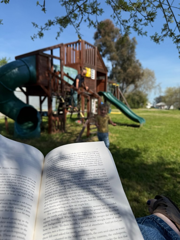 I’ve slowed down on reading because of how much my attention is currently directed outside. However, I picked up Braiding Sweetgrass by Robin Wall Kimmerer, and I’m greatly enjoying it. One of its reviews calls it a “hymn of love to the world”, and I agree. It’s been helping me reevaluate my relationship with the world, helping me be more intentional about the things I take and the things I give.