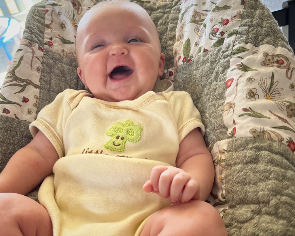 Beatrice is growing in leaps and bounds. She gives high fives and loves throwing balls (then applauding herself for throwing them). She’s sprouted a molar and is working on another one, and all of us are sleeping less because of it. She’s finally getting a bit more hair, and it’s coming in a beautiful wispy strawberry blonde. Her favorite foods right now include mozzarella balls, sausage, and bananas. She dances along to music, loves trying on everyone’s shoes, and sings with much gusto and no tune. We love our precious, precocious girl.