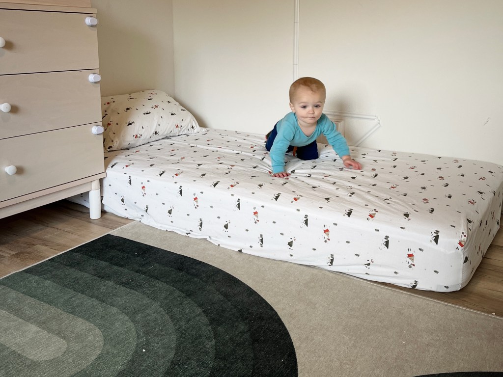 We transitioned from a crib to a floor bed, hoping it would help him sleep longer. So far it hasn’t improved much, but it’s easier for Jake and me to put him down and soothe him back to sleep, so I’m calling it a win. I need all the wins I can get, especially now that he’s down to one nap.