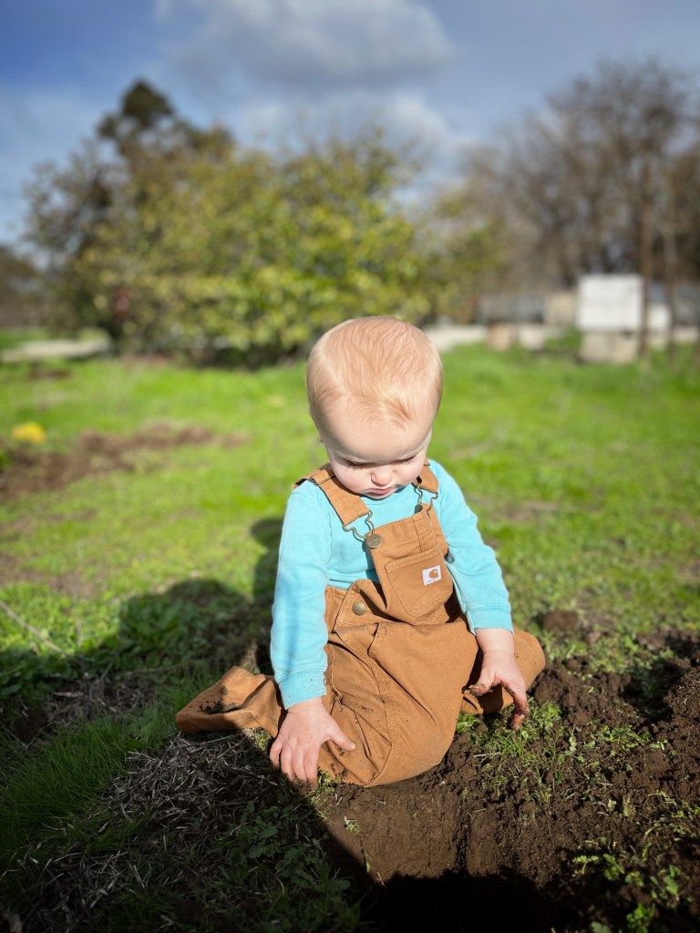 Being outside in the garden is one of his favorite pastimes. I have to keep a close eye on him to make sure he doesn’t eat the compost or behead one of my seedlings with his trowel, but he loves playing in the dirt with his garden tools. He helped Jake plant a tree, and helped me plant some blackberries.