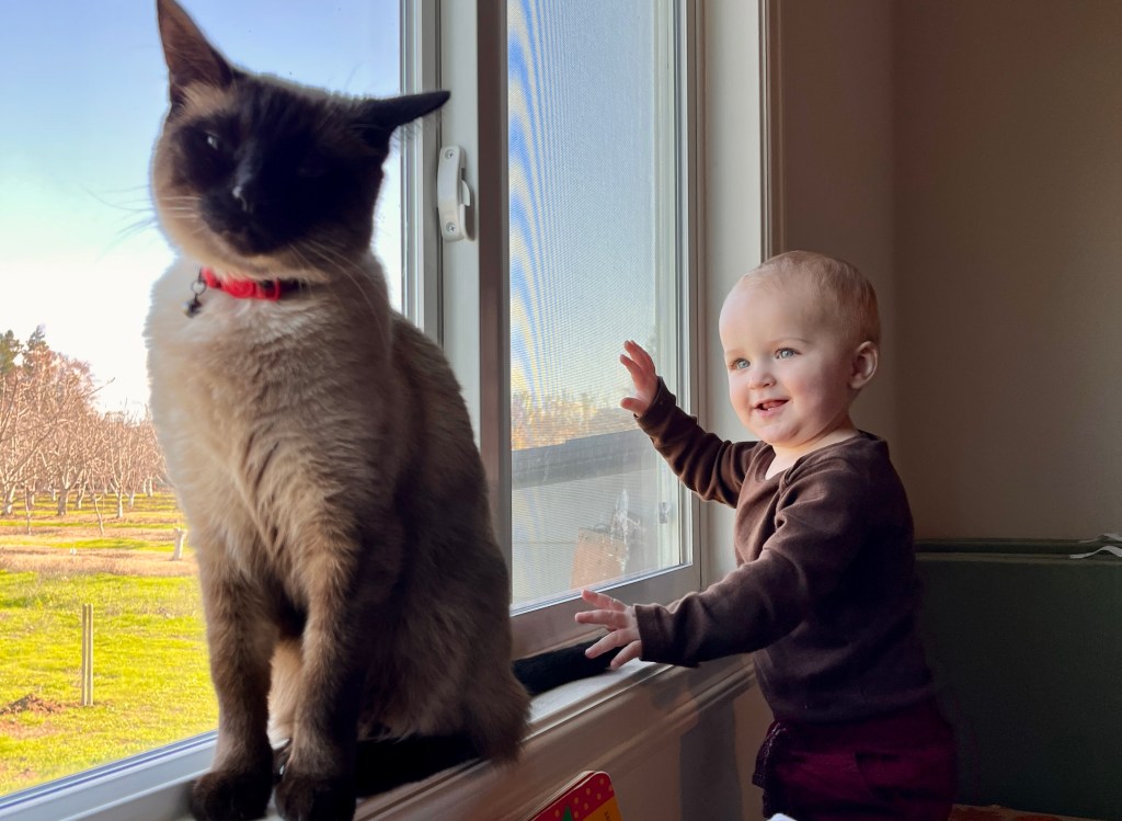 Grandpa and our cat Chai are tied for his best friend. Grandpa likes Michael a lot more than Chai does, but she’s tolerant of him and allows him to pet her. He’s remarkably gentle with pets for his age. He also enjoys chasing her with his toy mop (a behavior we’re trying to discourage).