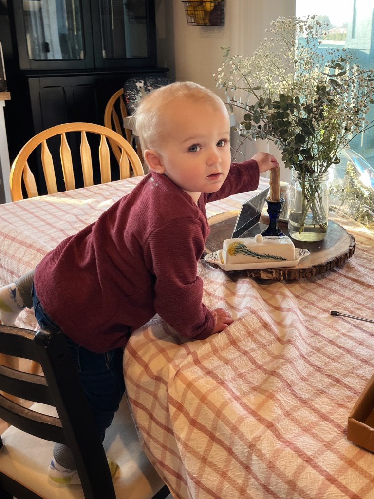 I had been struggling with “mom guilt” over having a simple and small birthday party, especially since my original plan had been much more ornate and exciting and involved inviting many friends. But seeing the happiness on his face as he opened gifts and wandered from person to person and smashed cake into every crevice of his high chair, that guilt eased a little. Although his party wasn’t elaborate, the cake was wonky, the house small, and the decorations imperfect…I know he still loved every moment of it.